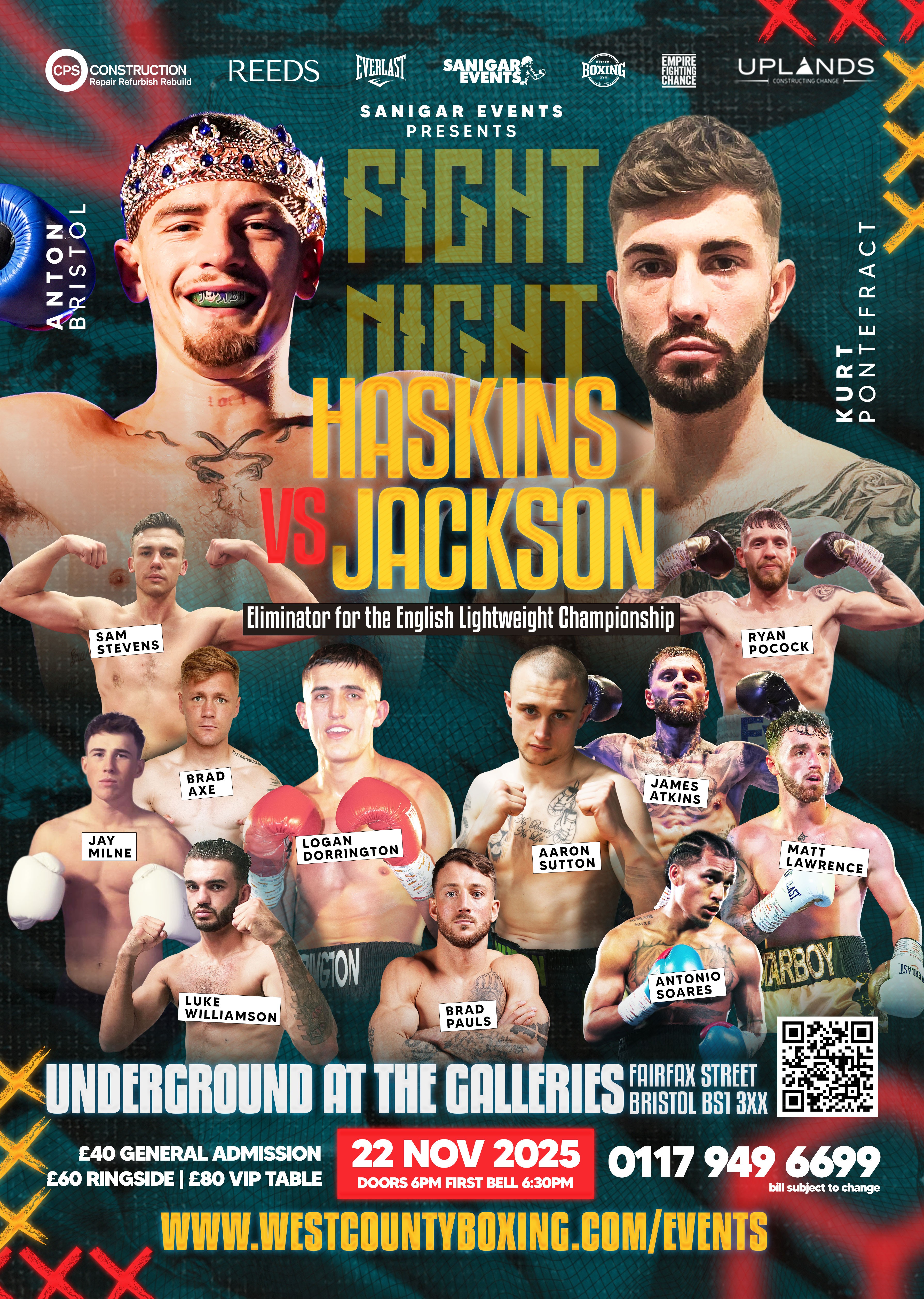 In the main event, Bristol’s own undefeated star Anton Haskins (13-0) steps up for the biggest fight of his career - an eliminator for the English Super Lightweight Title against Pontefract powerhouse Kurt Jackson. Expect fireworks as these two warriors battle it out for their shot at championship glory!